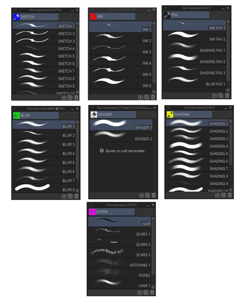 6 Ink 13 Shading 13 Sketch 7 Extra 2 Eraser 8 Blur Brushes Instant .Sut file delivery, easy setup, free updates. Digital only.